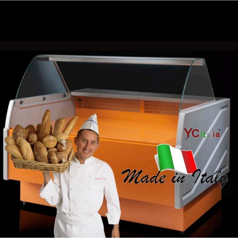 Banco neutro L1330 x P1175 x H1243 vetri curvi Una selezione di banchi alimentari neutri, ideali per esporre pane e pasticceria secca. . Una scelta funzionale e di design. versione neutra con riserva a sportelli, canalizzabile e dotato di vetri temperati Optional doghe in legno per garantire una massima visibilità del prodotto esposto